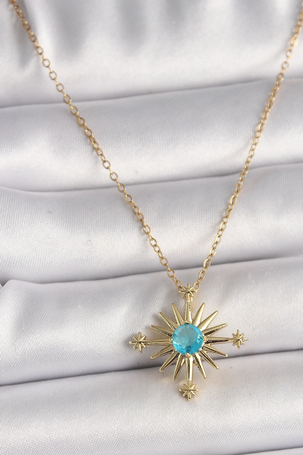 316L Çelik Gold Renk Zincir Mavi Taş Detaylı Kuzey Yıldız Model Kadın Kolye