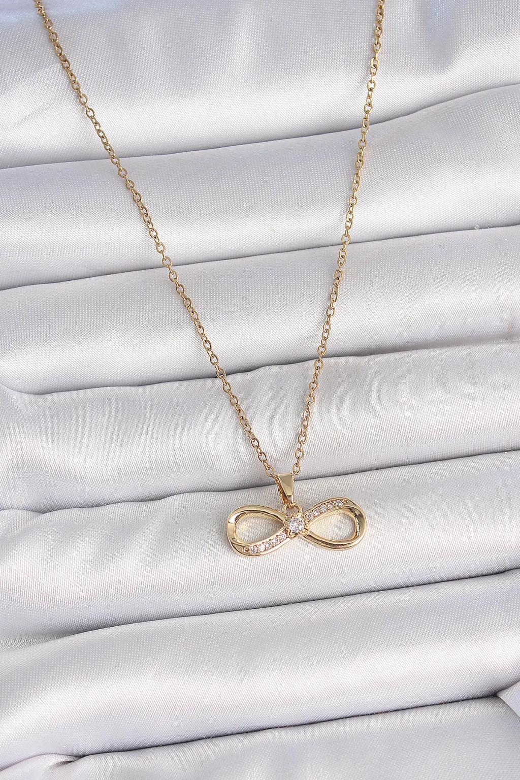 316L Çelik Gold Renk Zincir Zirkon Taşlı Sonsuzluk Model Kadın Kolye