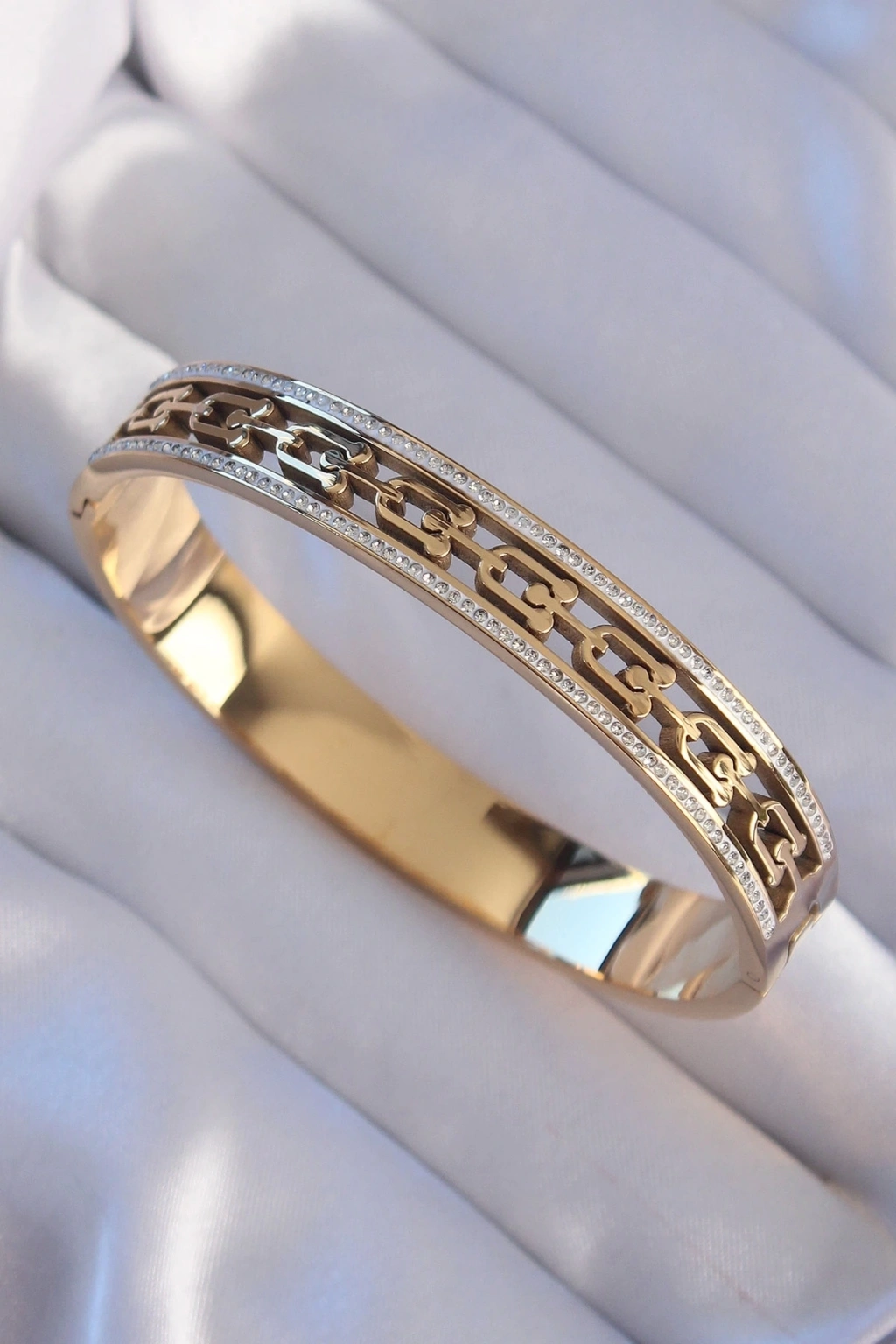 316L Çelik Gold Renk Zirkon Taşlı Model Kelepçe