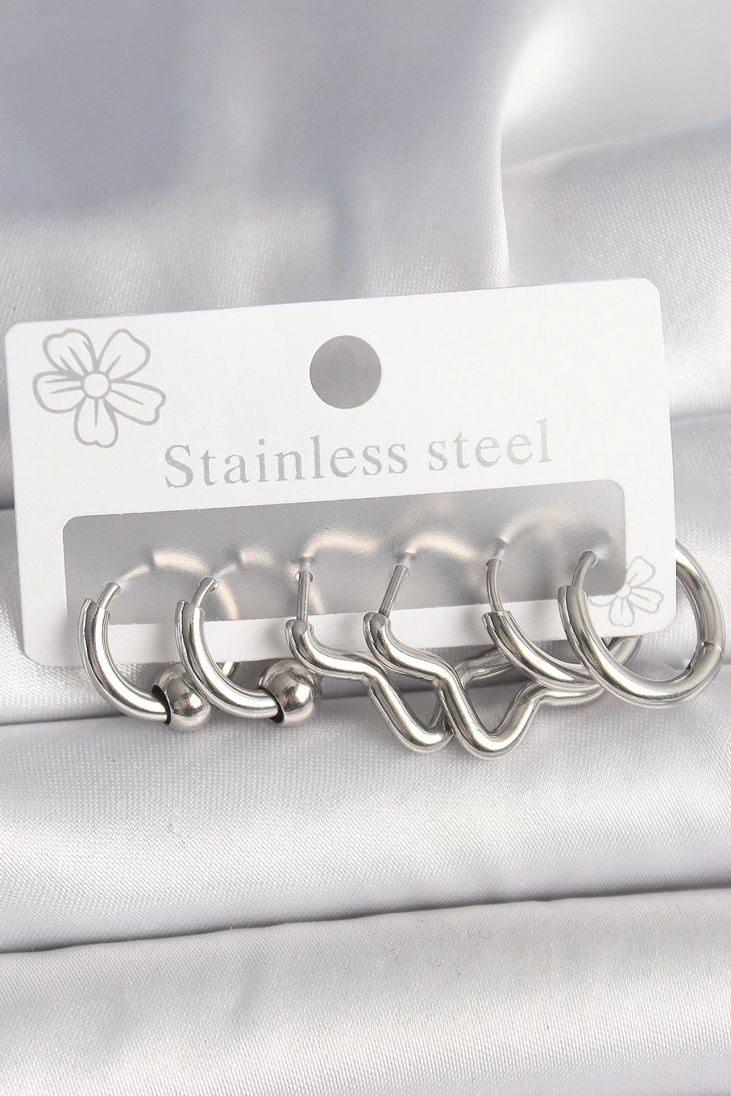 316L Çelik Gümüş Renk Halka Yıldız Model Kadın Küpe Seti