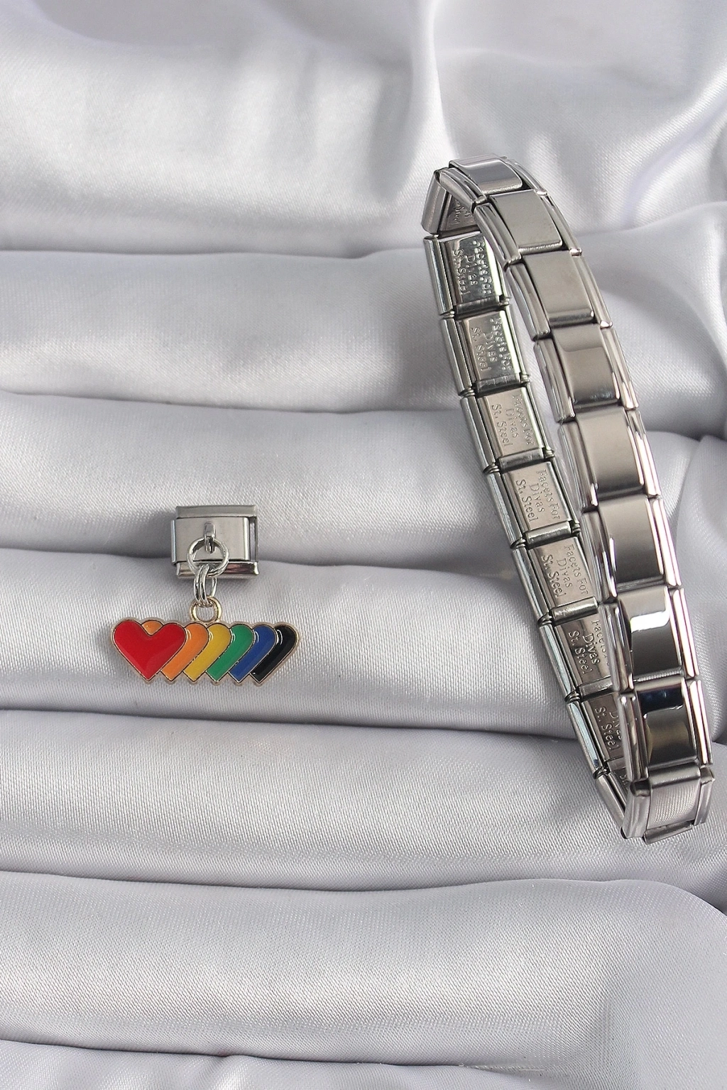 316L Çelik Gümüş Renk Renkli Sallantı Kalp Model Nomination Charm