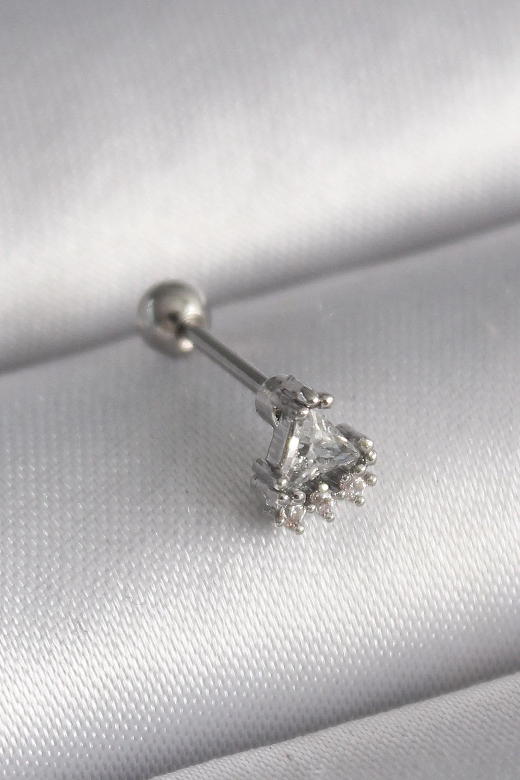 316L Çelik Gümüş Renk Üçgen Zirkon Taşlı Tragus Piercing