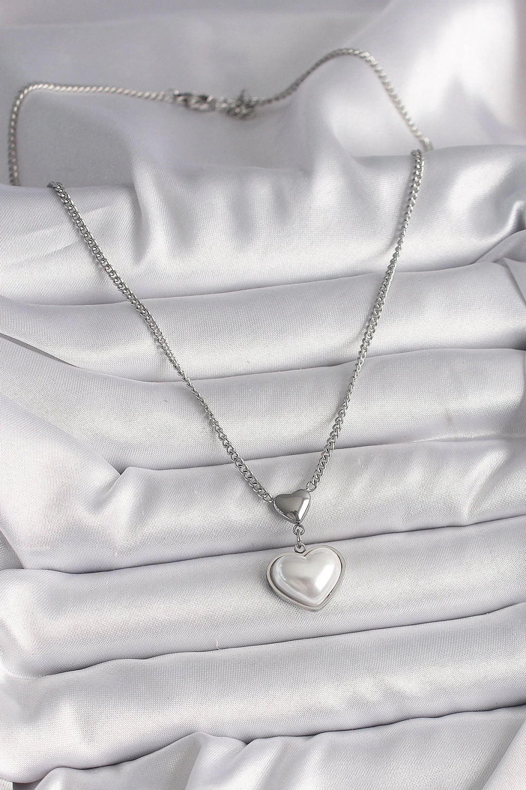 316L Çelik Gümüş Renk Zincir 3D Kalp Model Kadın Kolye