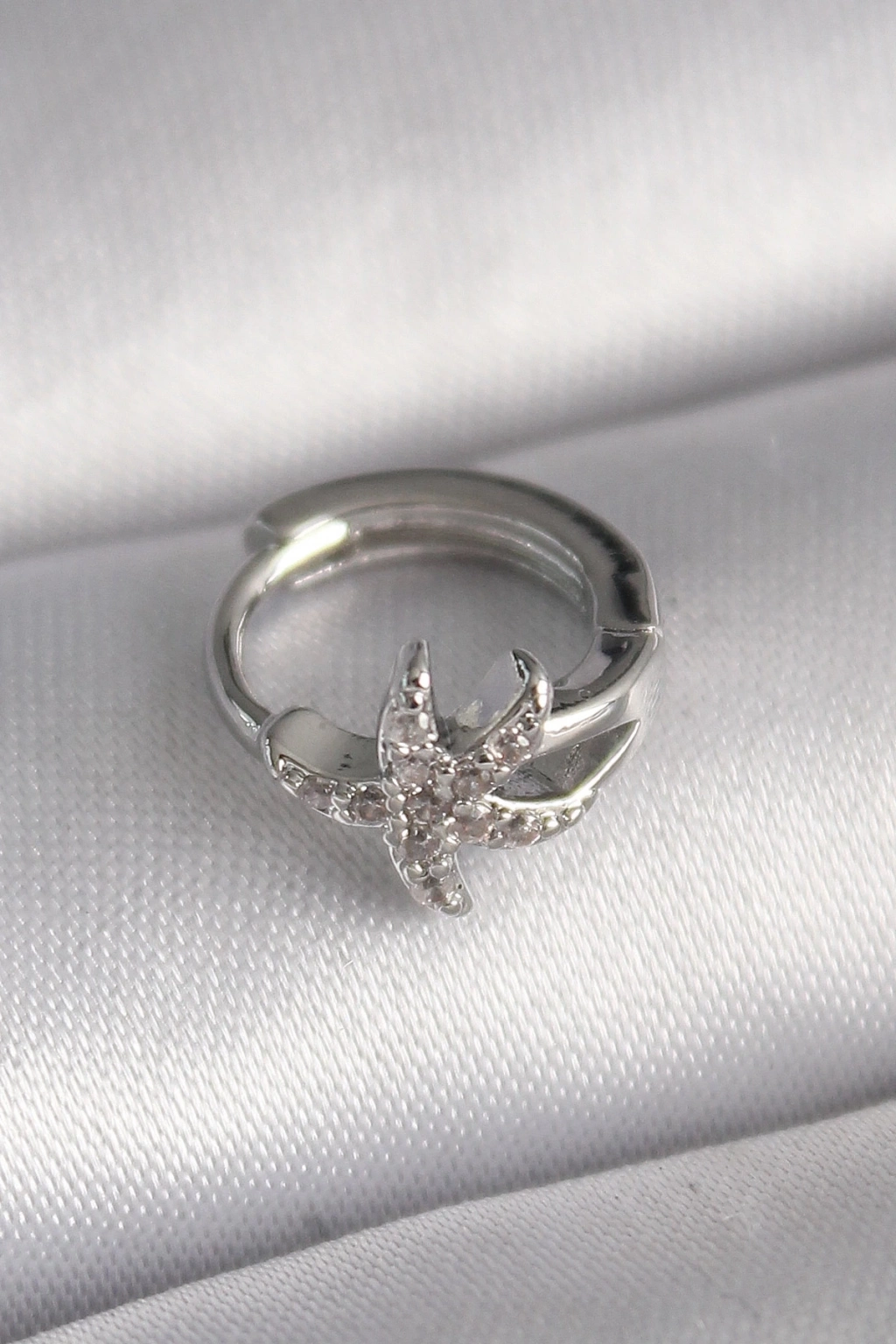 316L Çelik Gümüş Renk Zirkon Taşlı Deniz Yıldızı Model Tragus Piercing