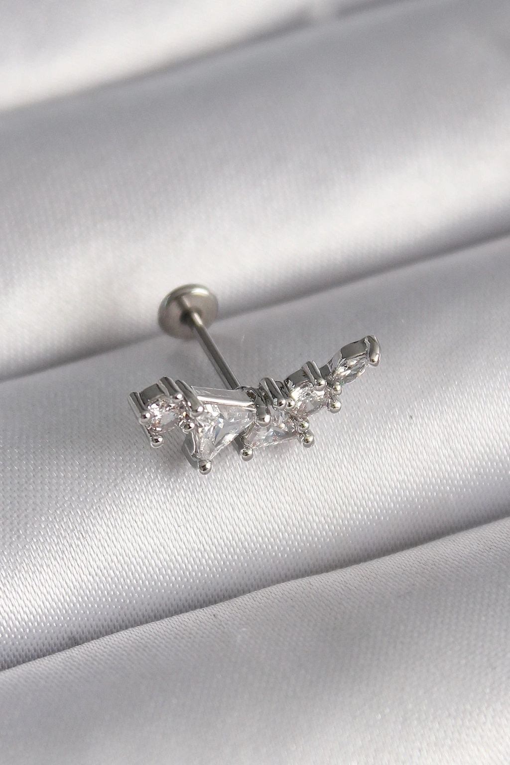 316L Çelik Gümüş Renk Zirkon Taşlı Tragus Piercing