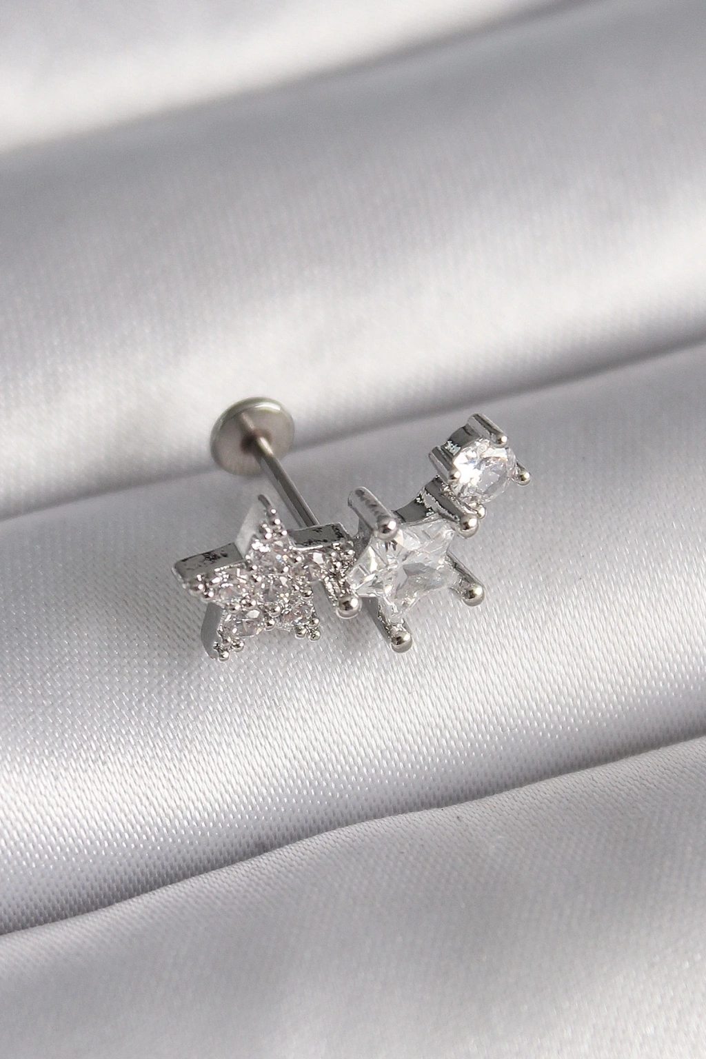 316L Çelik Gümüş Renk Zirkon Taşlı Yıldız Model Tragus Piercing