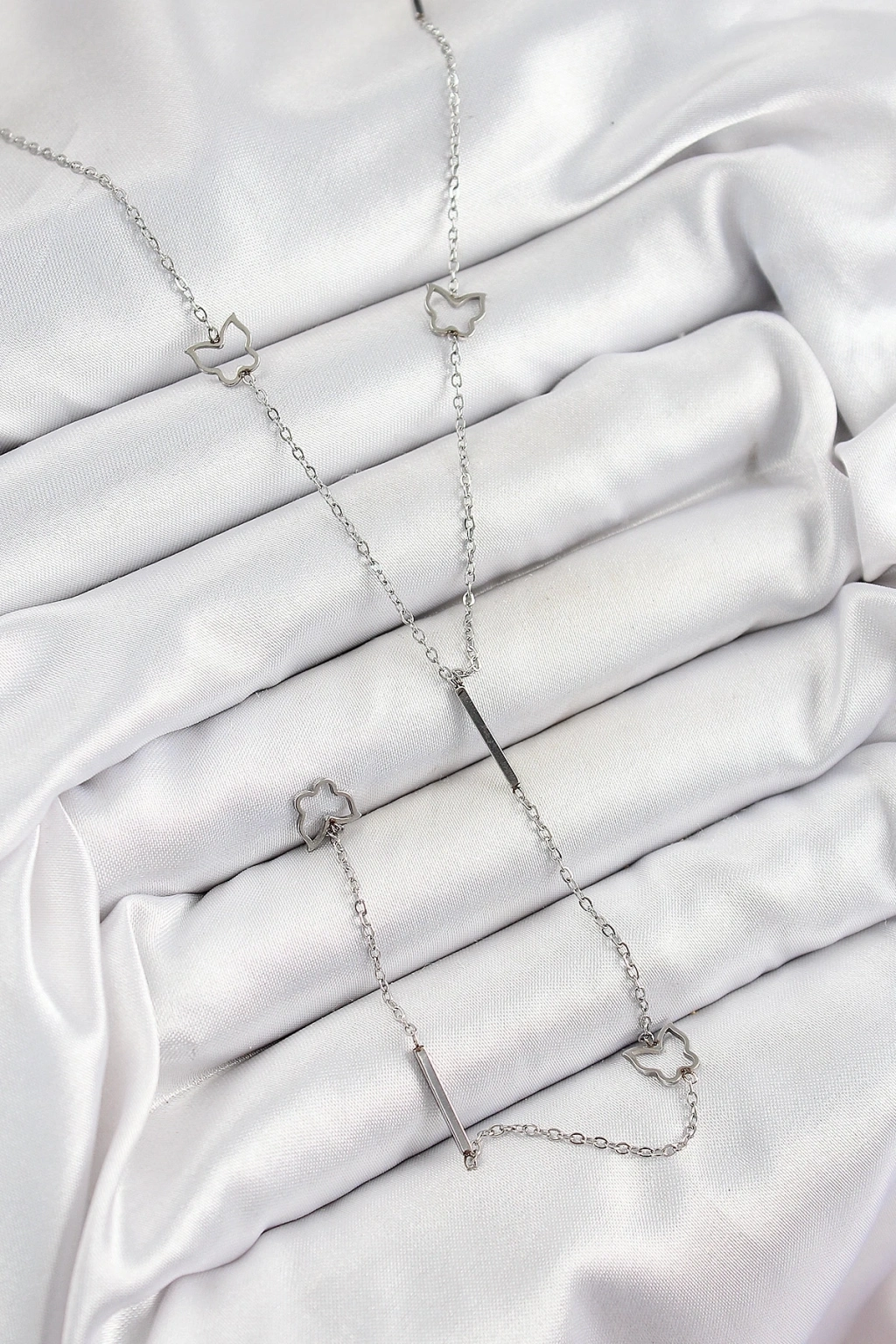 316L Çelik Kelebek Figürlü Y Model Gümüş Renk Kadın Kolye