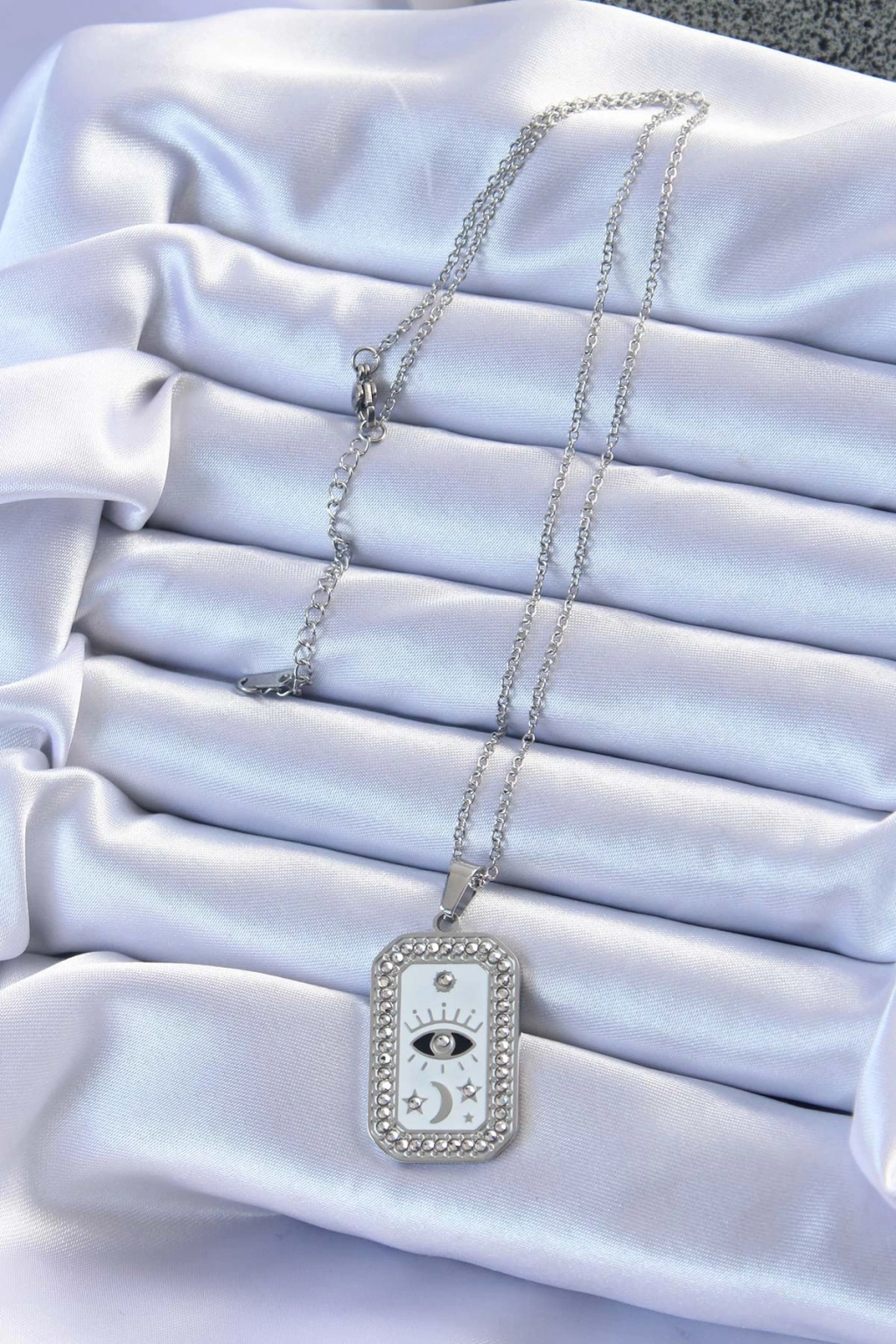 316L Çelik Zincir Gümüş Renk Mineli Zirkon Taşlı Göz Figür Tarot Kolye