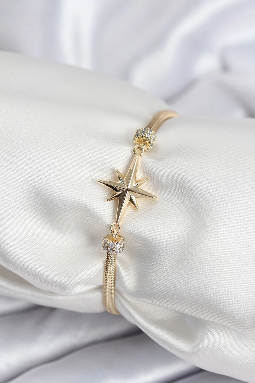Pirinç VIP Seri Gold Renk Kutup Yıldızı Model Kadın Bileklik