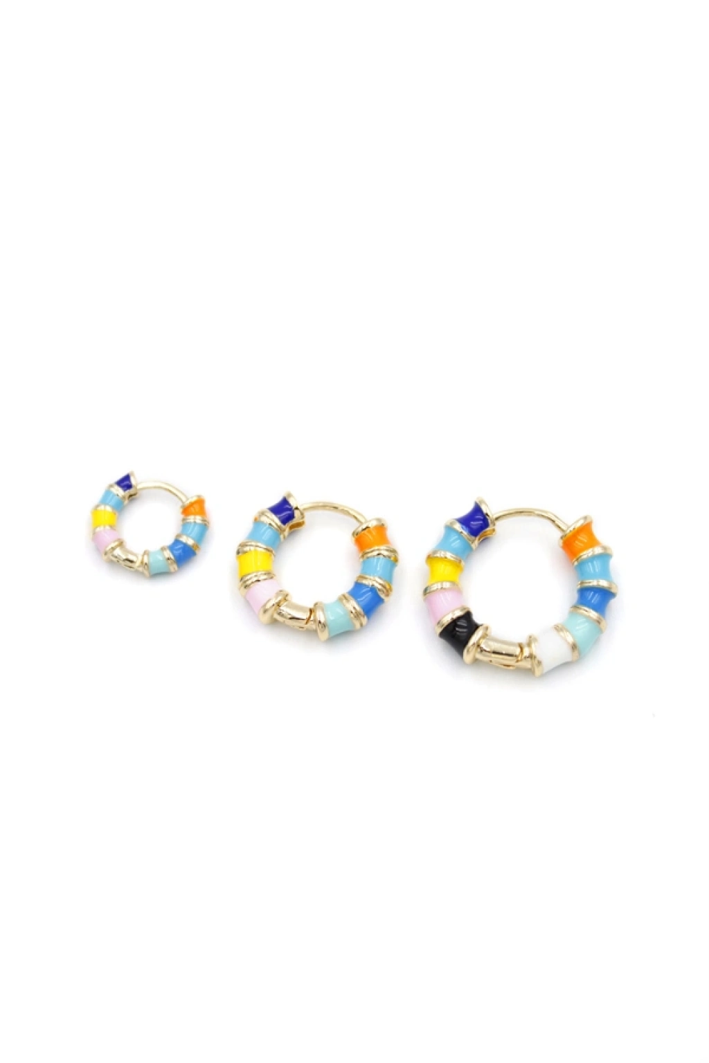 3'lü Renkli Halka Küpe - Altın