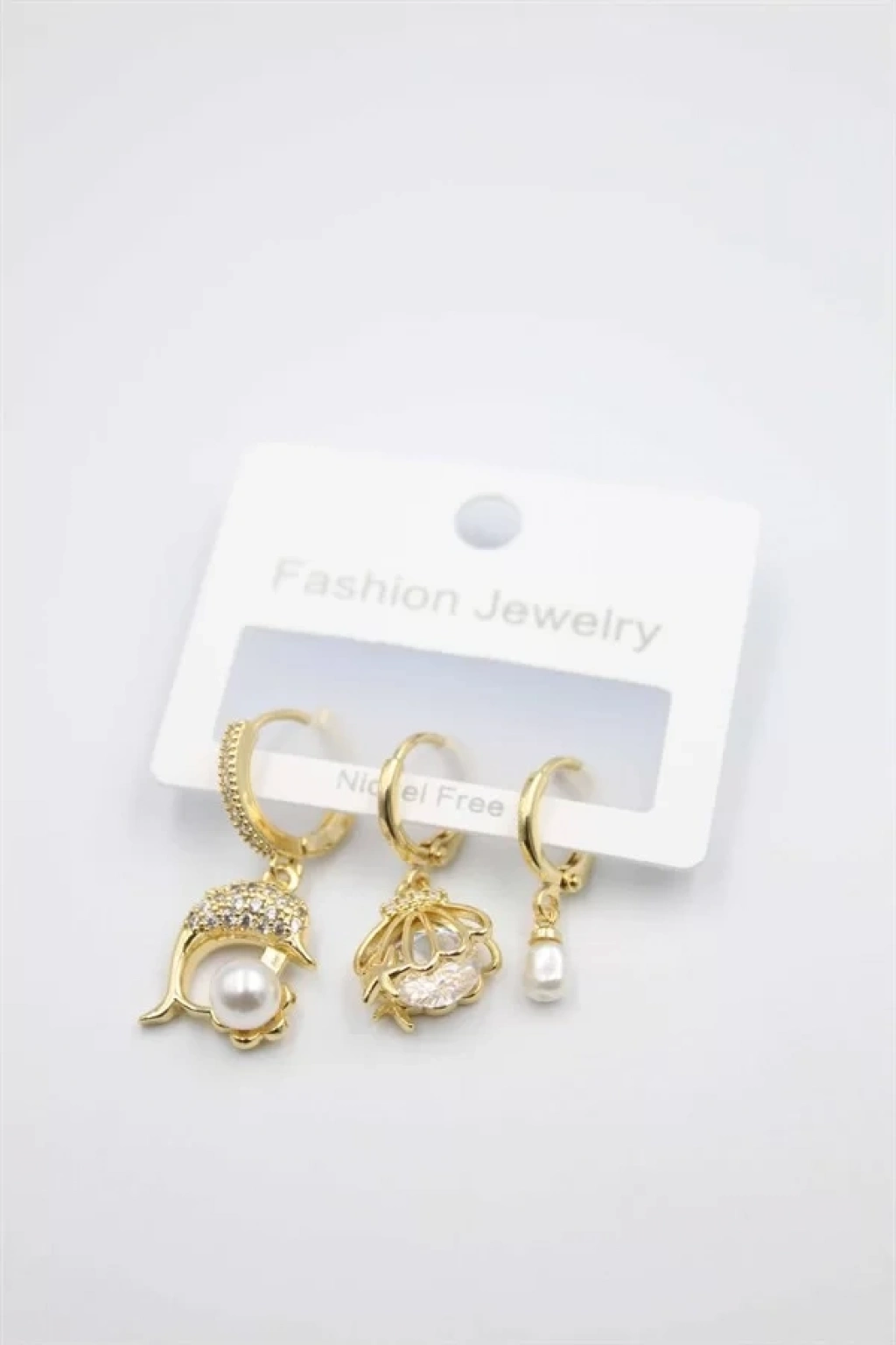 3'lü Yunus Balığı Küpe - Altın