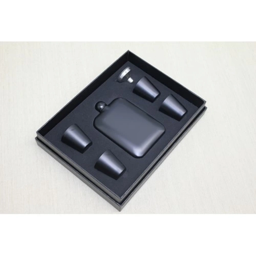 4 SHOT BARDAKLI MATARA SETİ SİYAHÜrün ÖzellikleriBu şık ve pratik 4 shot bardaklı matara seti, siyah renk tasarımıyla dikkat çeker. Set, 1 adet matara ve 4 adet shot bardak içerir. Matara, kaliteli paslanmaz çelikten üretilmiş olup, şık bir görünüm sunar. Set, kutusuyla birlikte gelir ve hediye olarak da oldukça uygun bir seçenektir. 4 shot bardağı da aynı şık siyah tasarımıyla uyumlu olup, içki servisi için idealdir. Dayanıklı yapısı sayesinde uzun süre kullanılabilir ve taşıma kolaylığı sağlar.Paket İçeriği1 Adet 4 Shot Bardaklı Matara Seti