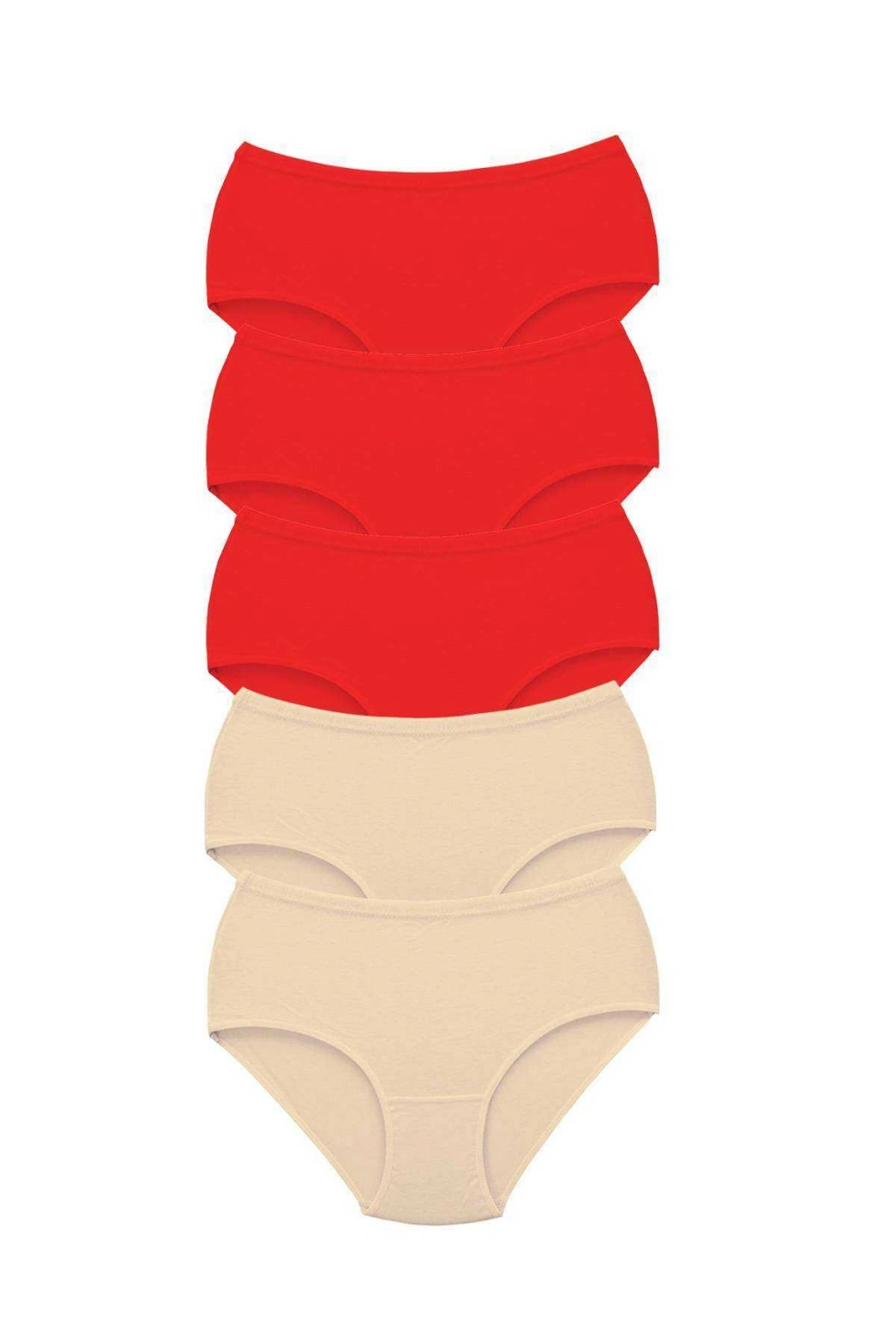 5 Adet Tutku Kadın Yüksek Bel Bato Kalın Lastik Külot Kırmızı Ten