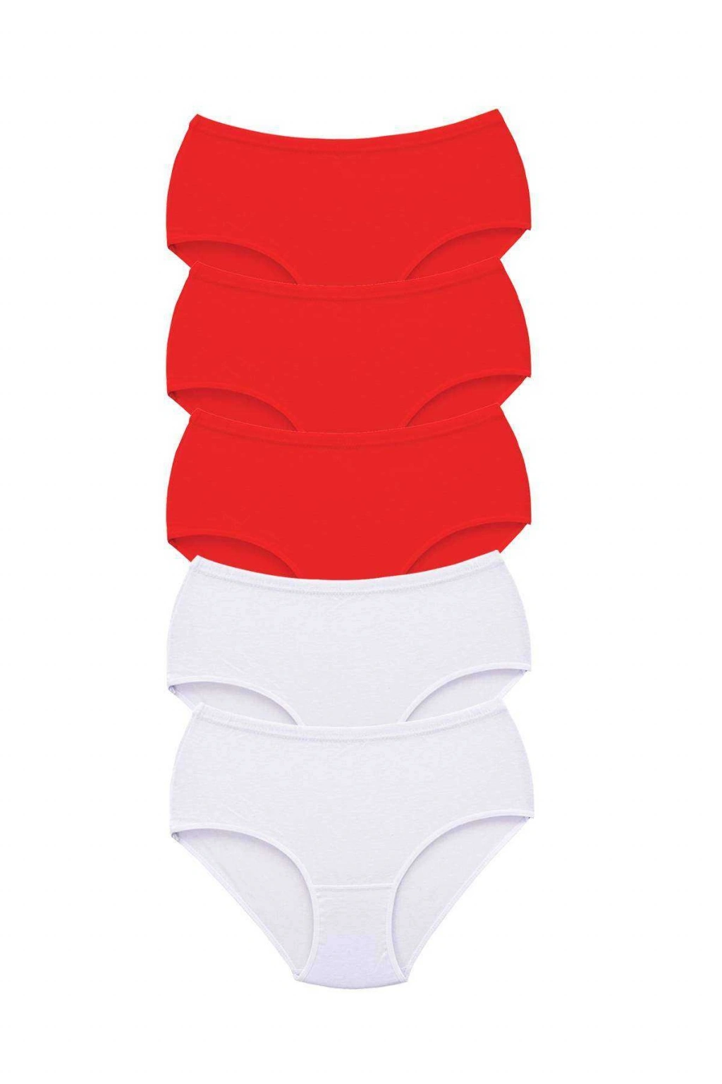 5 Adet Tutku Kadın Yüksek Bel Bato Kalın Lastik Külot Kırmızı Beyaz