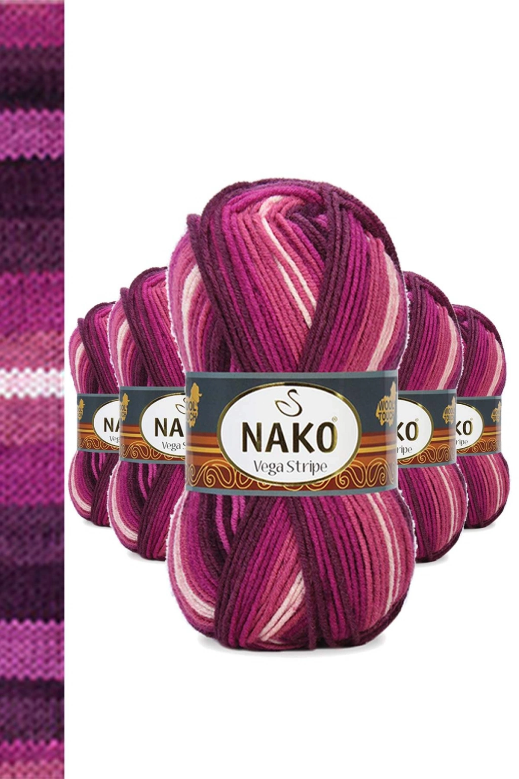 Paket içeriği:   5 Adet Vega Stripe Premium Akrilik El Örgü İpi Yünü No: 82413