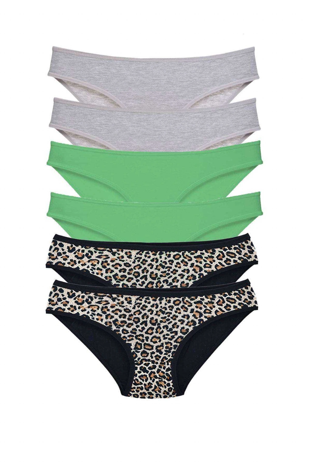 6 Adet Likralı Kadın Slip Külot Leopar Gri Yeşil