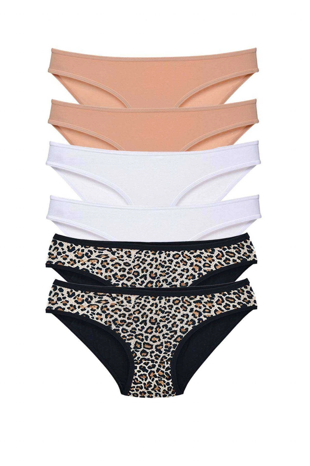 6 Adet Likralı Kadın Slip Külot Leopar Ten Beyaz