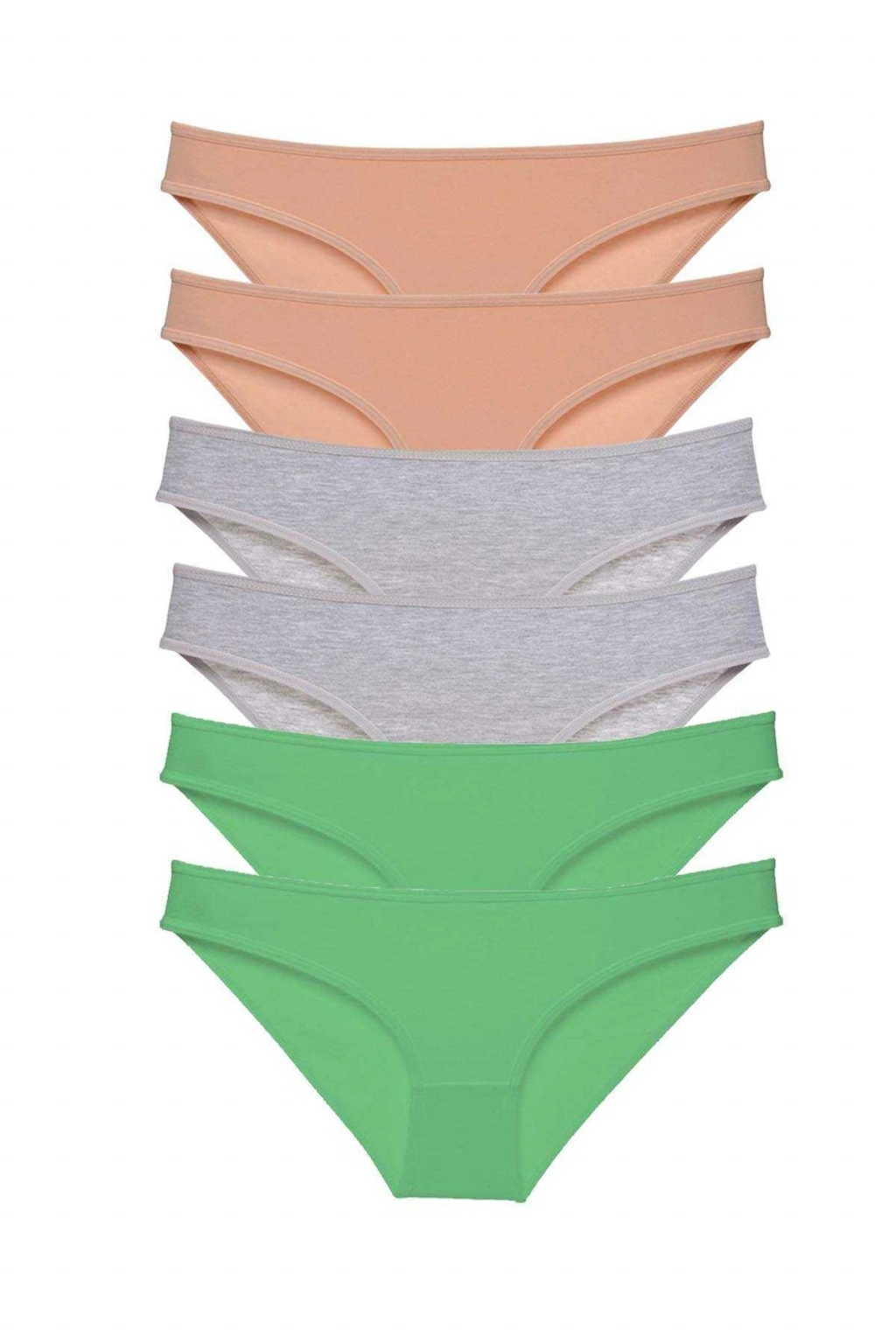 6 adet Süper Eko Set Likralı Kadın Slip Külot Ten Gri Yeşil