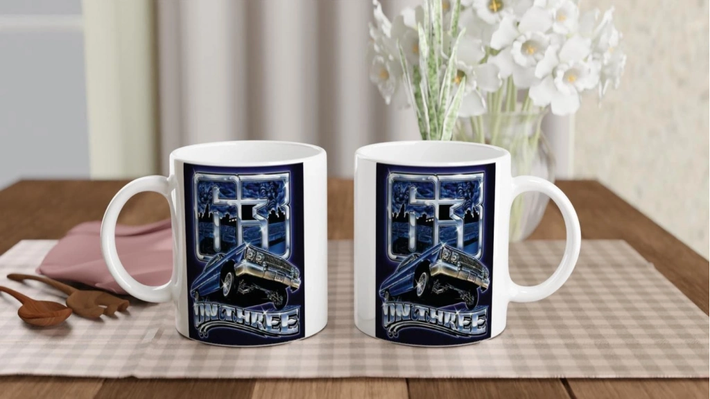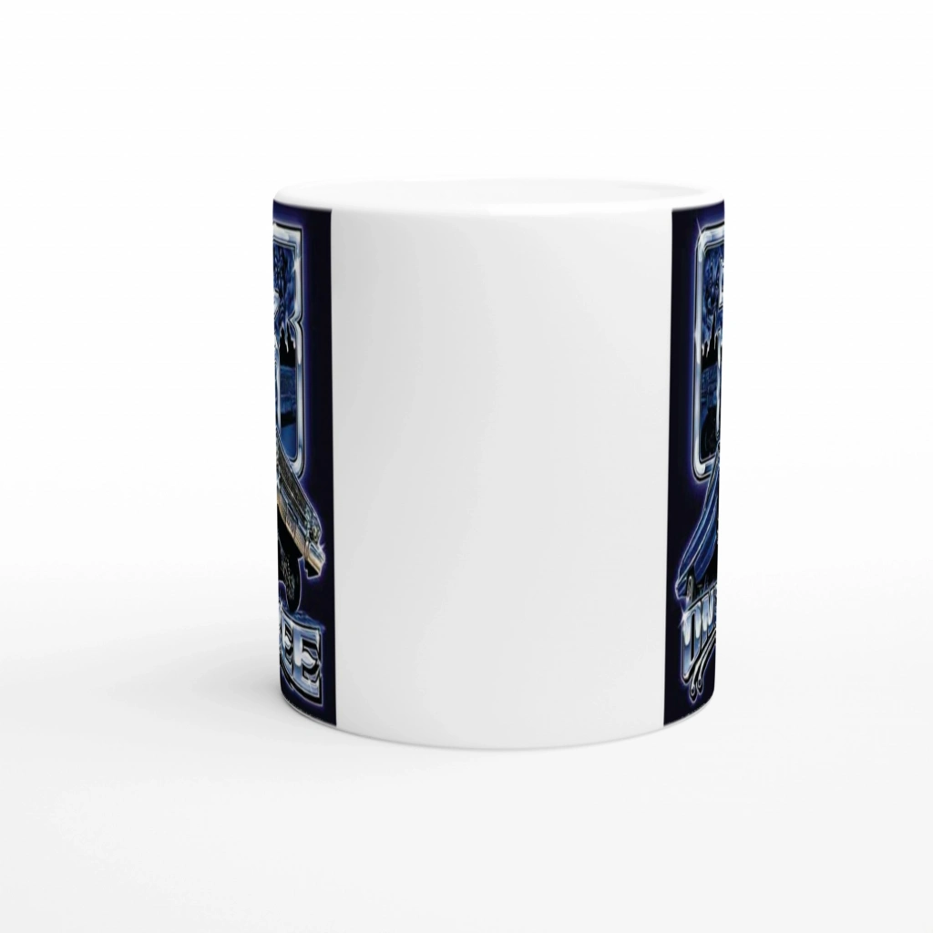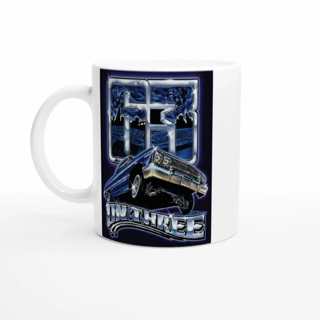 Gece mavisi zemin üzerinde yükselen bu 63 lowrider kupa bardak, otomobil tutkunları için etkileyici bir koleksiyon parçası.