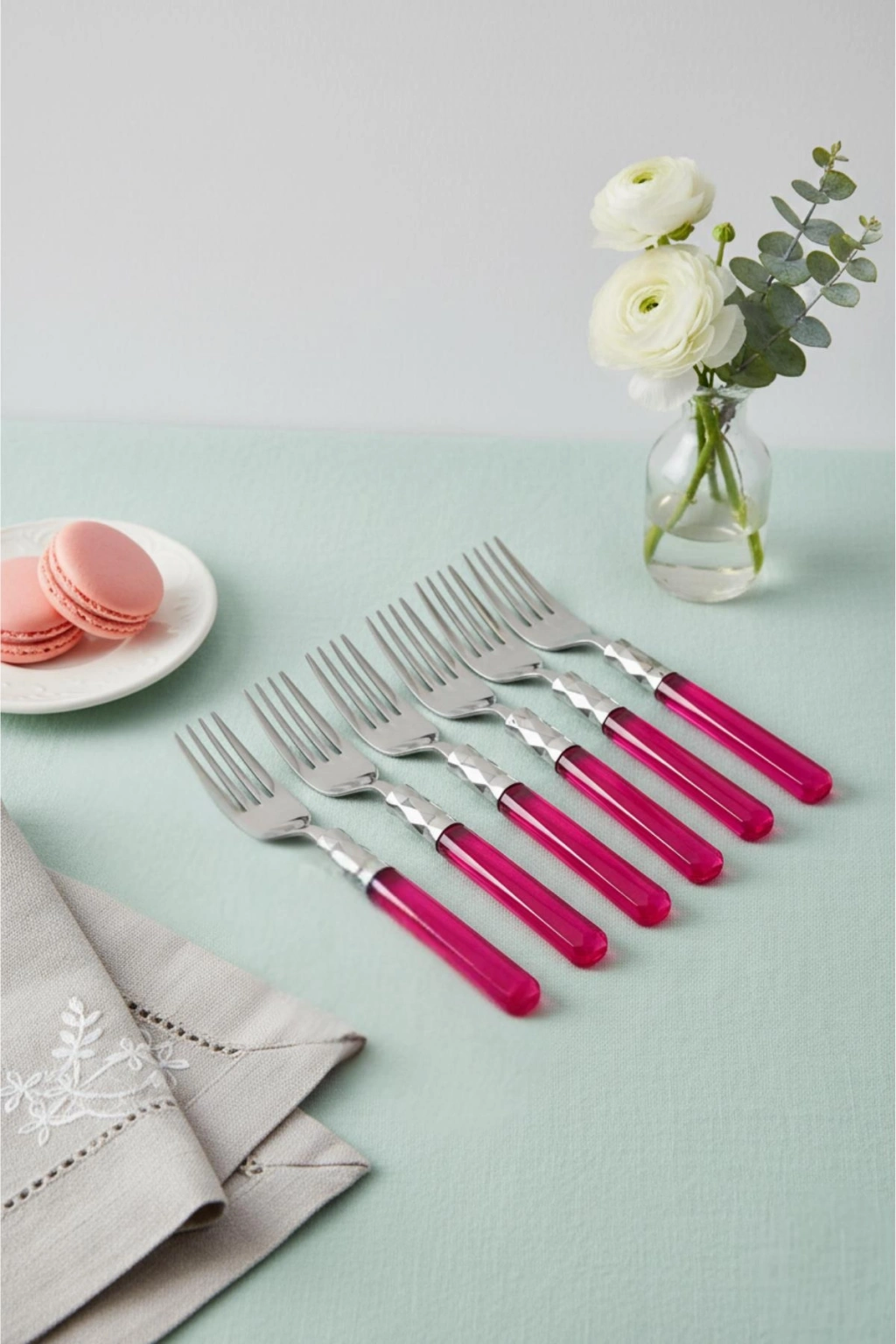 6’lı Paslanmaz Çelik Pembe Tatlı Çatalı Seti