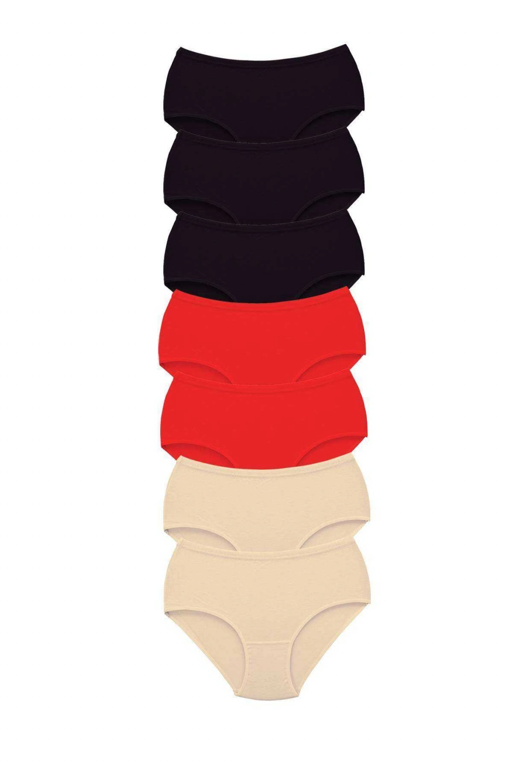 7 Adet Tutku Kadın Yüksek Bel Bato Kalın Lastik Külot Siyah Kırmızı Ten