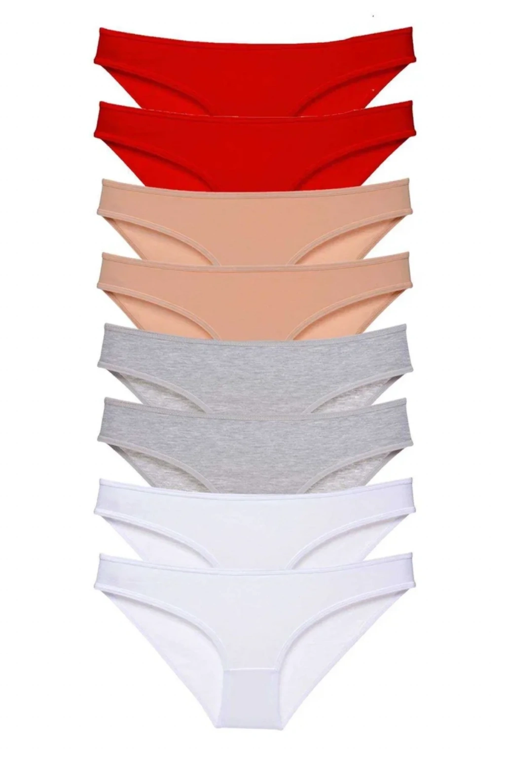 8 adet Süper Eko Set Likralı Kadın Slip Külot Kırmızı Ten Gri Beyaz