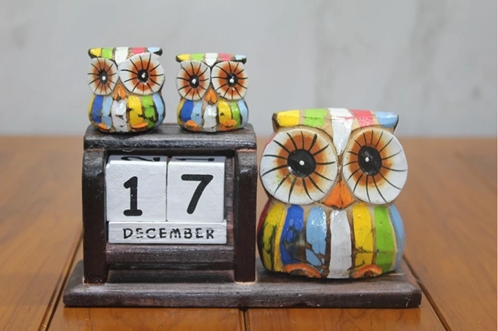 Ahşap Baykuş Takvim Polos-18 Ürün Ölçüleri 11*16 Cm