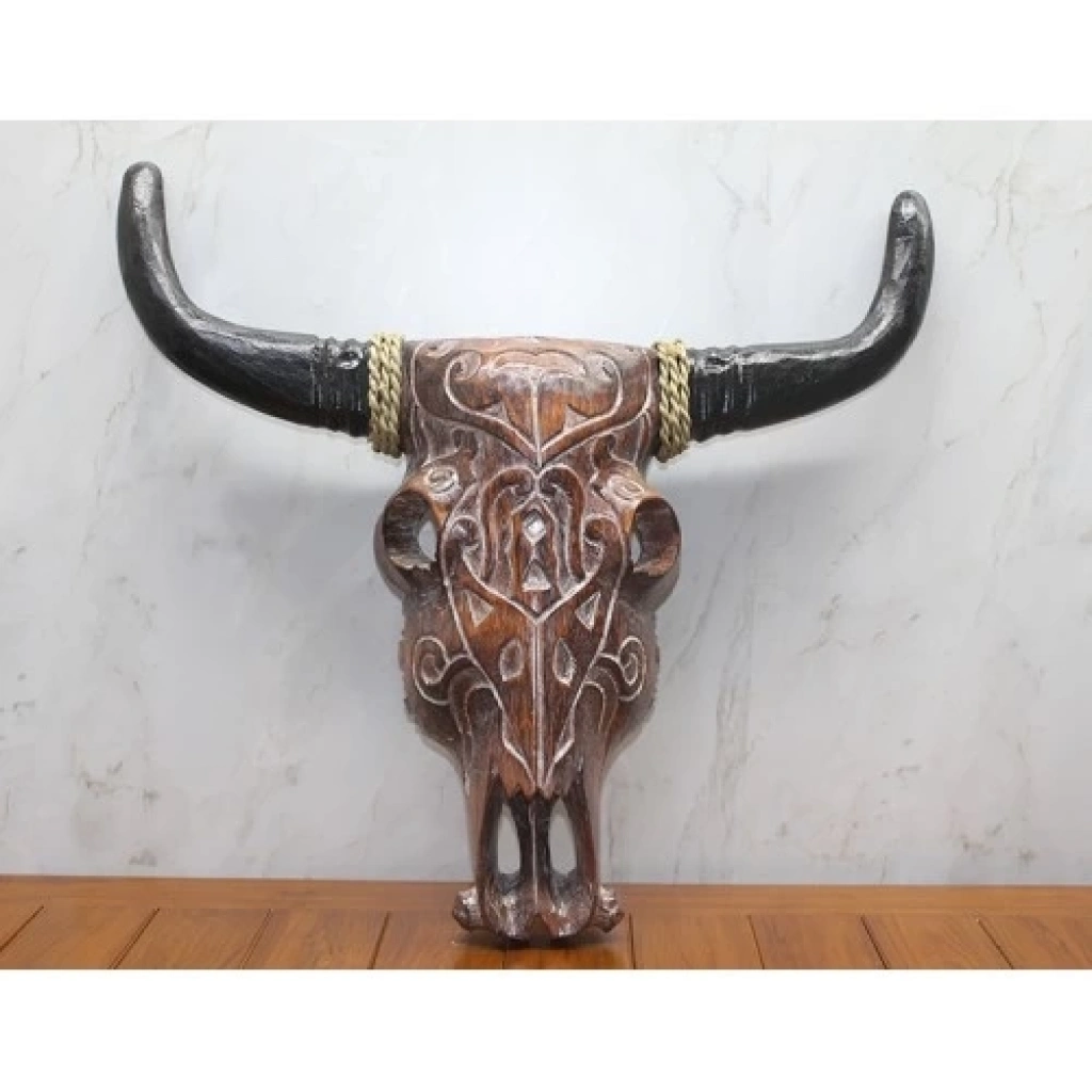 AHŞAP DUVARA ASMALI BUFALO KAFASIÜrün ÖzellikleriDoğal ahşaptan el işçiliğiyle üretilen duvara asmalı bufalo kafası figürü, 55x58 cm boyutundadır. Güçlü ve etkileyici tasarımıyla duvar dekorasyonuna farklı bir hava katar. Rustik ve doğal bir atmosfer oluşturmak için ideal olup, ev, ofis ve kafe gibi mekanlarda şık bir dekoratif unsur olarak kullanılabilir. Ahşap dokusu sayesinde dayanıklı ve uzun ömürlüdür.Paket İçeriği1 adet ahşap duvara asmalı bufalo kafası.