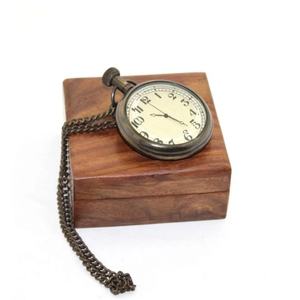 Ahşap Kutulu Pirinç Köstekli Saat Model 1