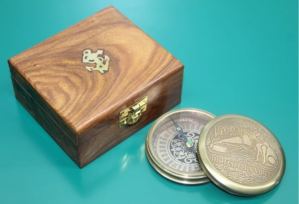 Ahşap Kutulu Pirinç Pusula 16222 Ürün Ölçüleri 11*10 Cm