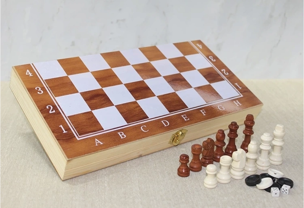 Ahşap Kutulu Satranç Ve Tavla Seti Alk4023