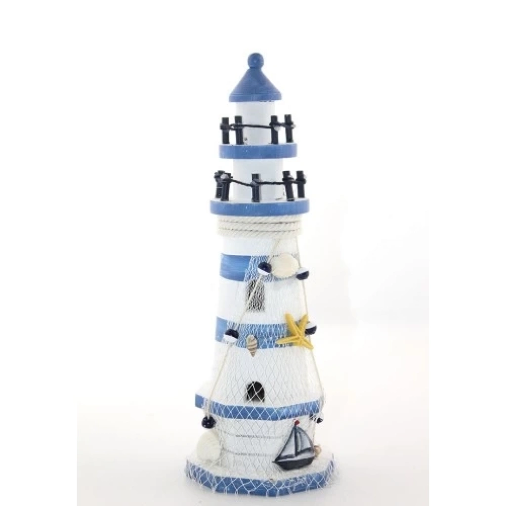 AHŞAP MARİN DENİZ FENERİ MODEL 8Ürün ÖzellikleriAhşap Marin Deniz Feneri Model 8, deniz temalı dekorasyon sevenler için özel olarak tasarlanmış estetik ve zarif bir dekoratif üründür. 30x10 cm ölçülerindeki yapısıyla dikkat çeken bu model, masa, raf veya vitrin gibi alanlarda şık bir görüntü oluşturur. Ahşap malzemeden üretilmiş olup, dayanıklı ve uzun ömürlü kullanım sunar. El işçiliği ile detaylandırılmış mavi ve beyaz renk kombinasyonu, marin temalı mekanlara mükemmel uyum sağlar. Deniz esintisini yaşam alanlarınıza taşıyan dekoratif bir parçadır.Paket İçeriği1 adet Ahşap Marin Deniz Feneri Model 8