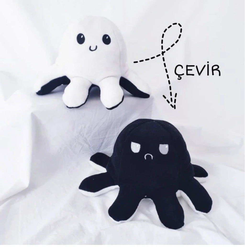 Ahtapot Yastık Çevirdikçe Trip Değiştiren Eğlenceli Yastık Siyah - Beyaz
