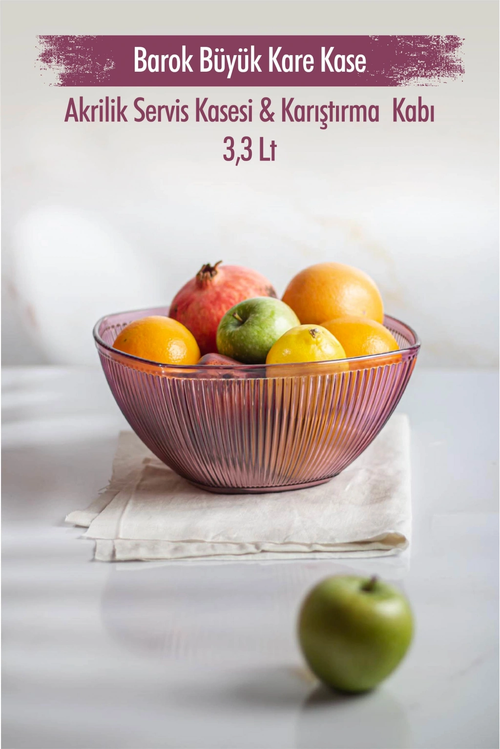 Akrilik Barok Mürdüm Büyük Kare Meyve & Salata Kasesi & Karıştırma Kabı / 3,3 Lt (CAM DEĞİLDİR)