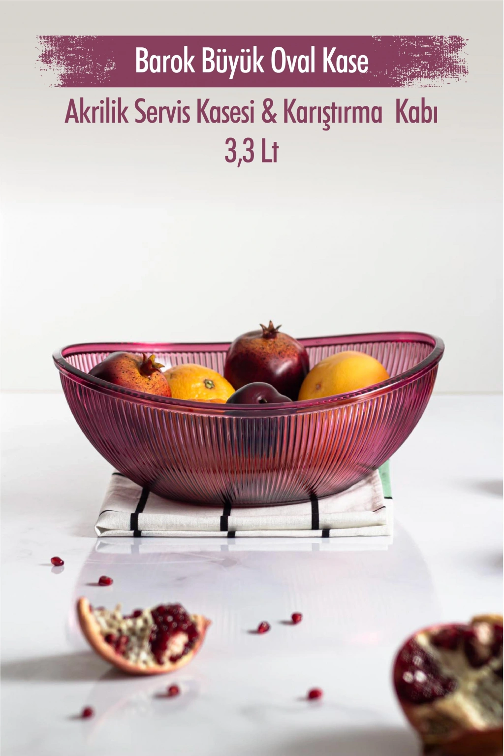 Akrilik Barok Mürdüm Büyük Oval Meyve & Salata Kasesi & Karıştırma Kabı / 3,3 Lt (CAM DEĞİLDİR)