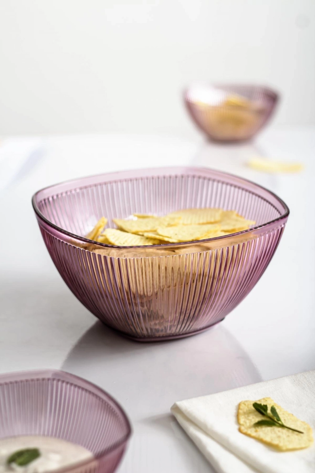 Akrilik Barok Mürdüm Orta Boy Kare Meyve & Salata Kasesi & Karıştırma Kabı / 1,5 Lt (CAM DEĞİLDİR)