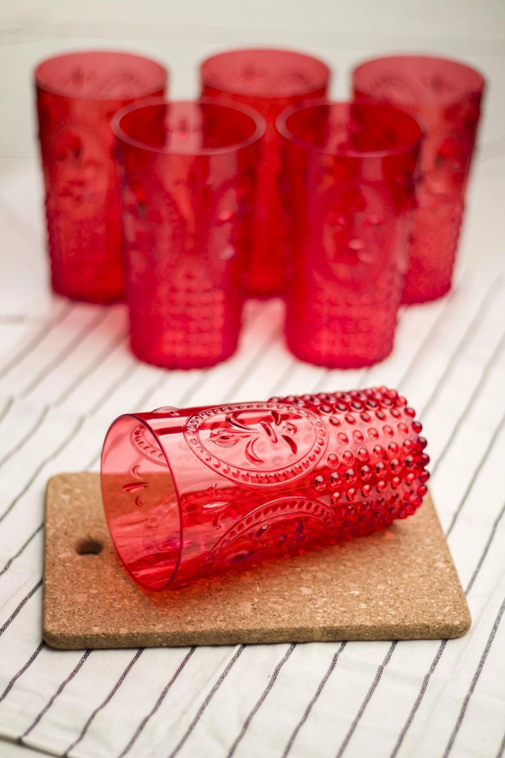 Akrilik Kırmızı 6'lı Uzun Bardak & Su Meşrubat Bardağı 750 ml ( Büyük Boy & Cam Değildir )