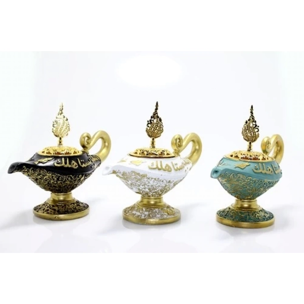 ALAADDİN TÜTSÜ BRÜLÖRÜÜrün ÖzellikleriAlaaddin Tütsü Brülörü, polyester malzemeden üretilmiş şık ve dayanıklı bir tütsü yakma aksesuarıdır. 12x20 cm boyutlarında, kompakt tasarımıyla masa ve sehpa gibi alanlarda rahatça kullanılabilir. Alaaddin'in Lambası ve detaylı tasarımı ile nostaljik bir hava katar. Tütsü brülörünün kullanımı oldukça basittir ve hem dekoratif hem de işlevsel bir üründür. Evde rahatlatıcı bir atmosfer yaratmak için ideal bir aksesuardır. Ayrıca, tütsülerin yaydığı hoş kokuları alırken görsel olarak da estetik bir ortam oluşturur.Paket İçeriği1 adet Alaaddin Tütsü Brülörü