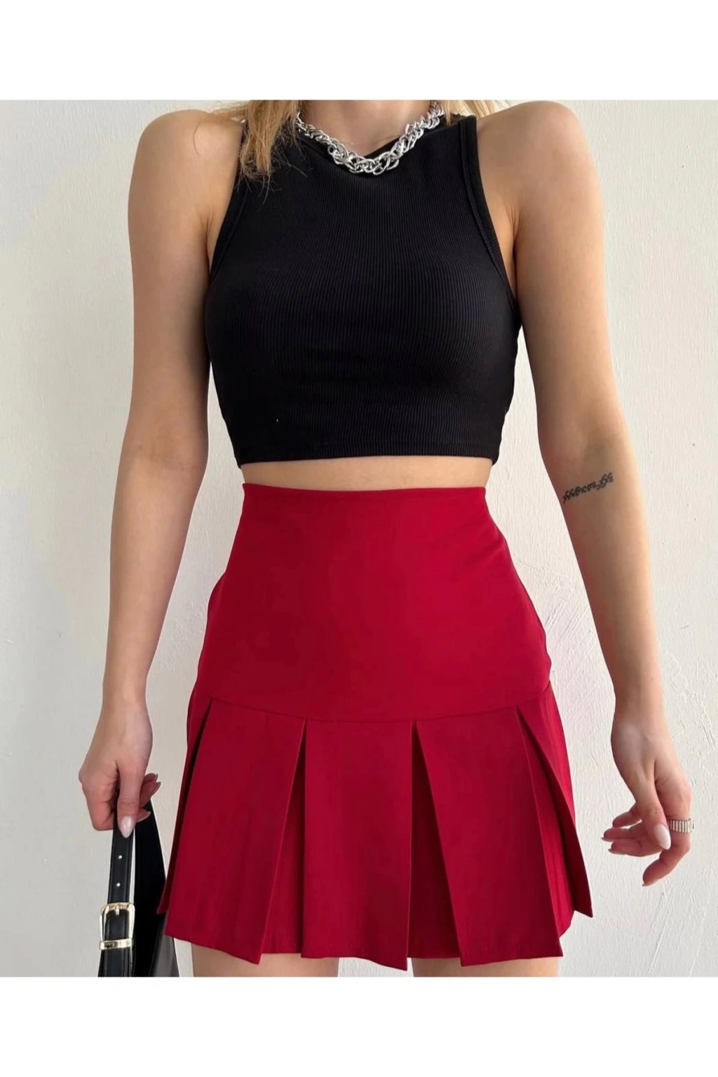 Altı geniş pileli etek bordo s24729