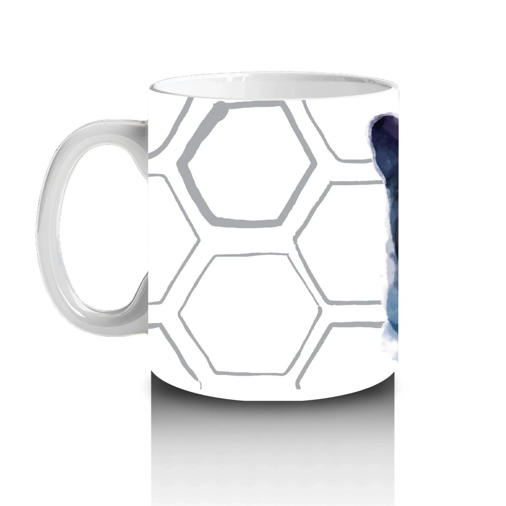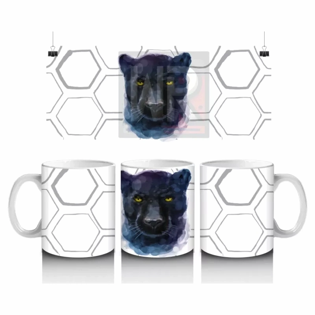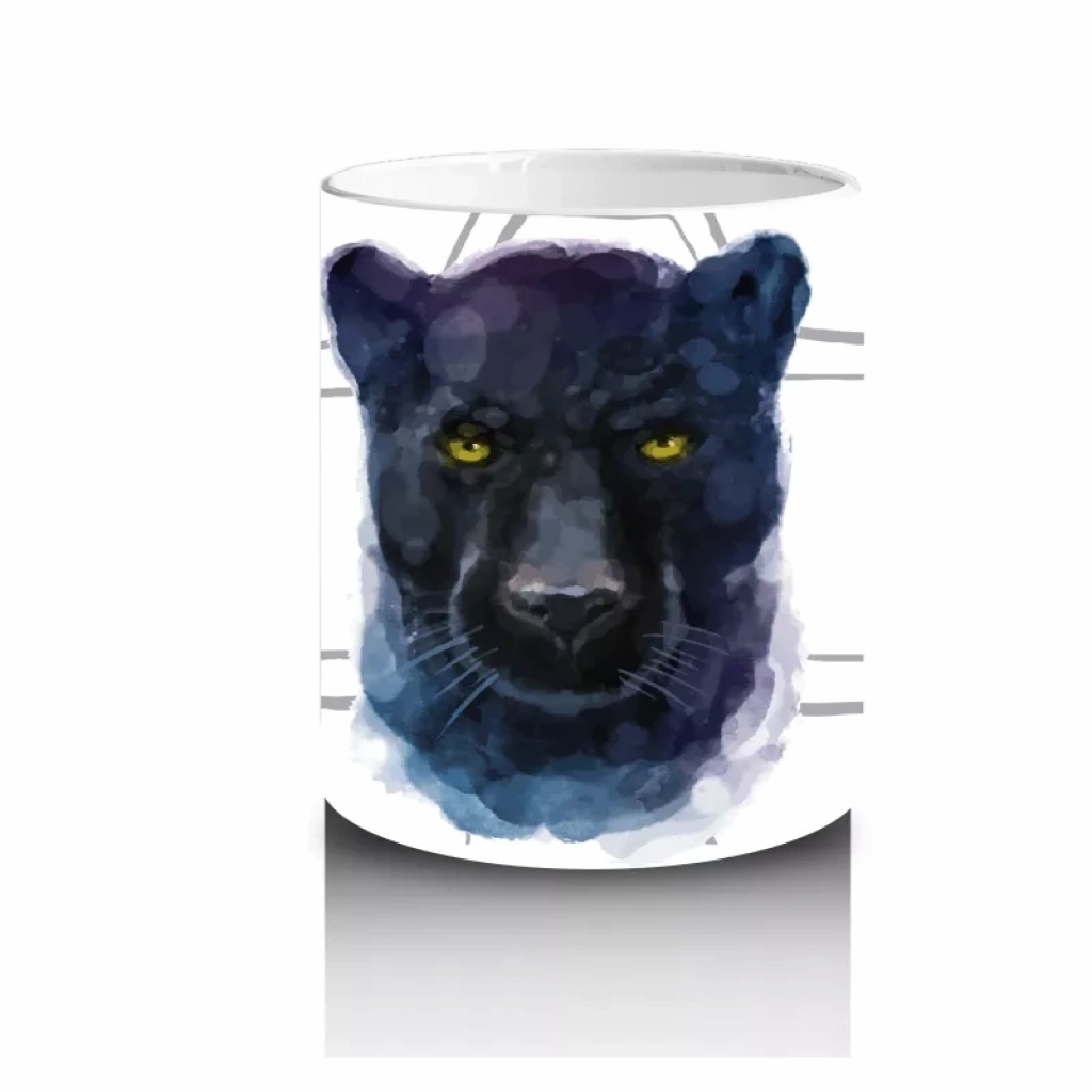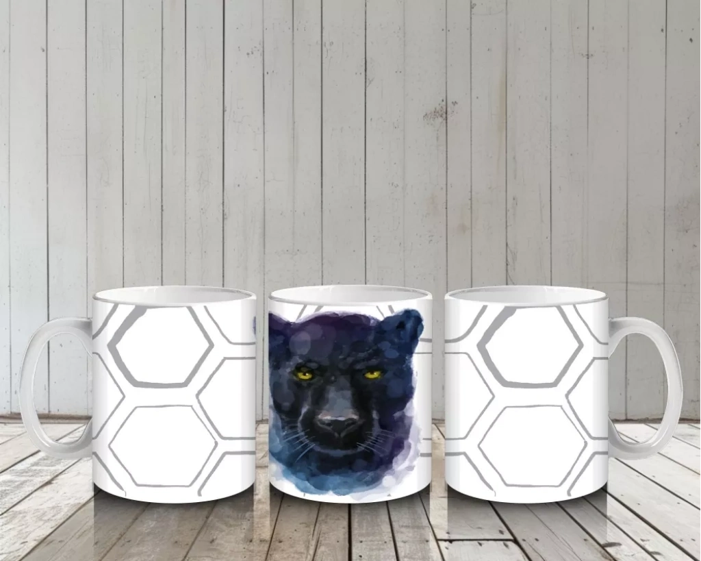 Altıgen Desen Üzerinde Mor Gözlü Panter Portresi – Baskılı Kahve KupasıAltıgen zemin üzerinde konumlanmış mor gözlü panter portresi, güçlü ve gizemli bir etki yaratıyor. Vahşi zarafeti sevenler için karizmatik ve modern bir kupa tasarımı." "