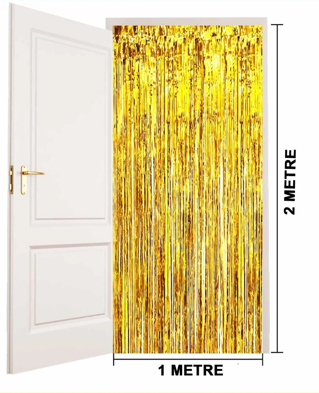 Altın Gold renk ekstra metalize parlak saçaklı arka fon perdesi ile özel günlerinize ve kutlamalarınıza göz kamaştırıcı bir ışıltı katın! İthal A kalite malzemeden üretilen bu perde, 1x2 metre boyutuyla her türlü dekorasyona uyum sağlar.