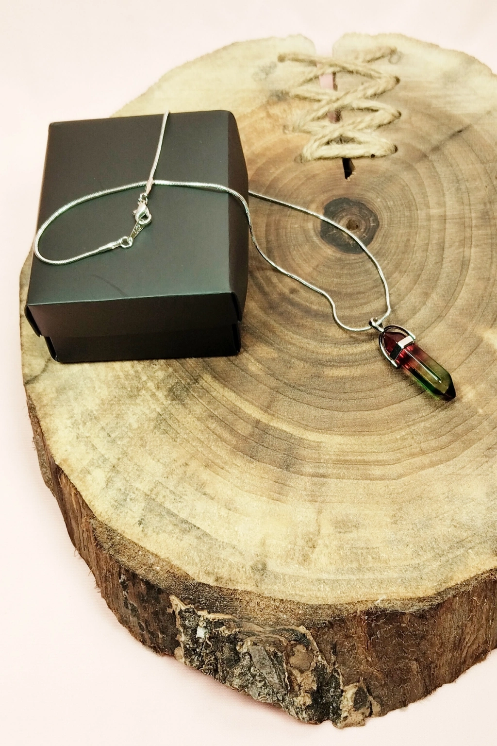 Anyolit 2 Doğal Taşı Zincirli El Yapımı Tasarımlı Kolye Uç: 3,5 cm Zincir: 20 cm Kutulu