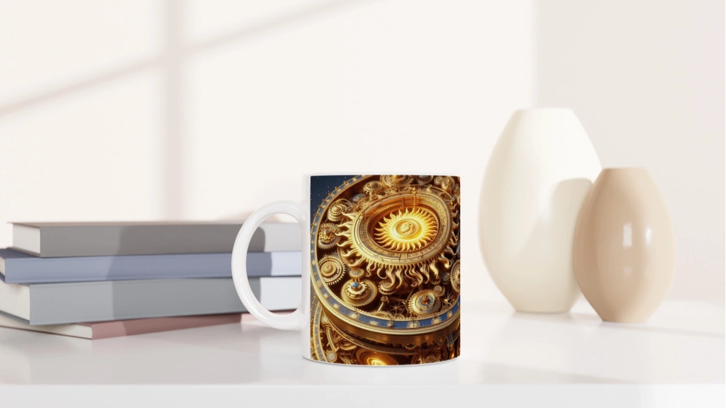 Aslan Burcu Baskılı Kahve Kupası - Zamanın Çarkları Astroloji Mekanizması Vs2