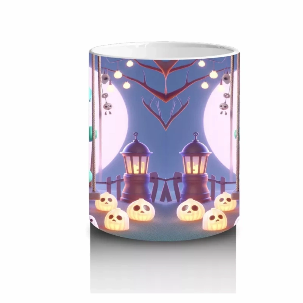 Kupa yüzeyine işlenen Cadılar Bayramı temalı görseller, yüksek kalite süblimasyon baskı sayesinde uzun süre canlı kalır. Ancak kimyasal deterjanlardan kaynaklanabilecek solmaları önlemek için elde yıkama önerilir.