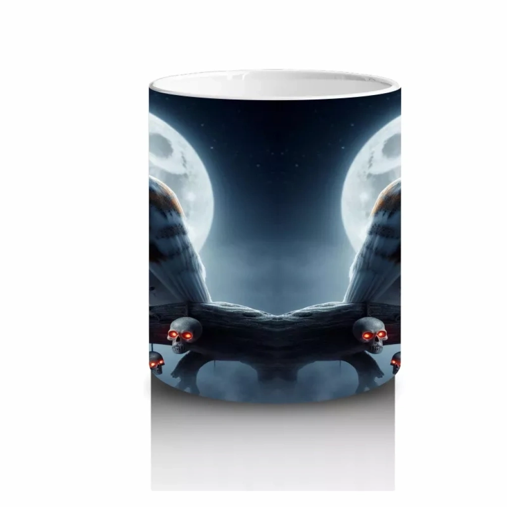 Ay ışığında sırt sırta duran vampir kadınlar figürüyle tasarlanan bu gotik kupa bardak, Cadılar Bayramı’na mistik ve güçlü bir hava katar.