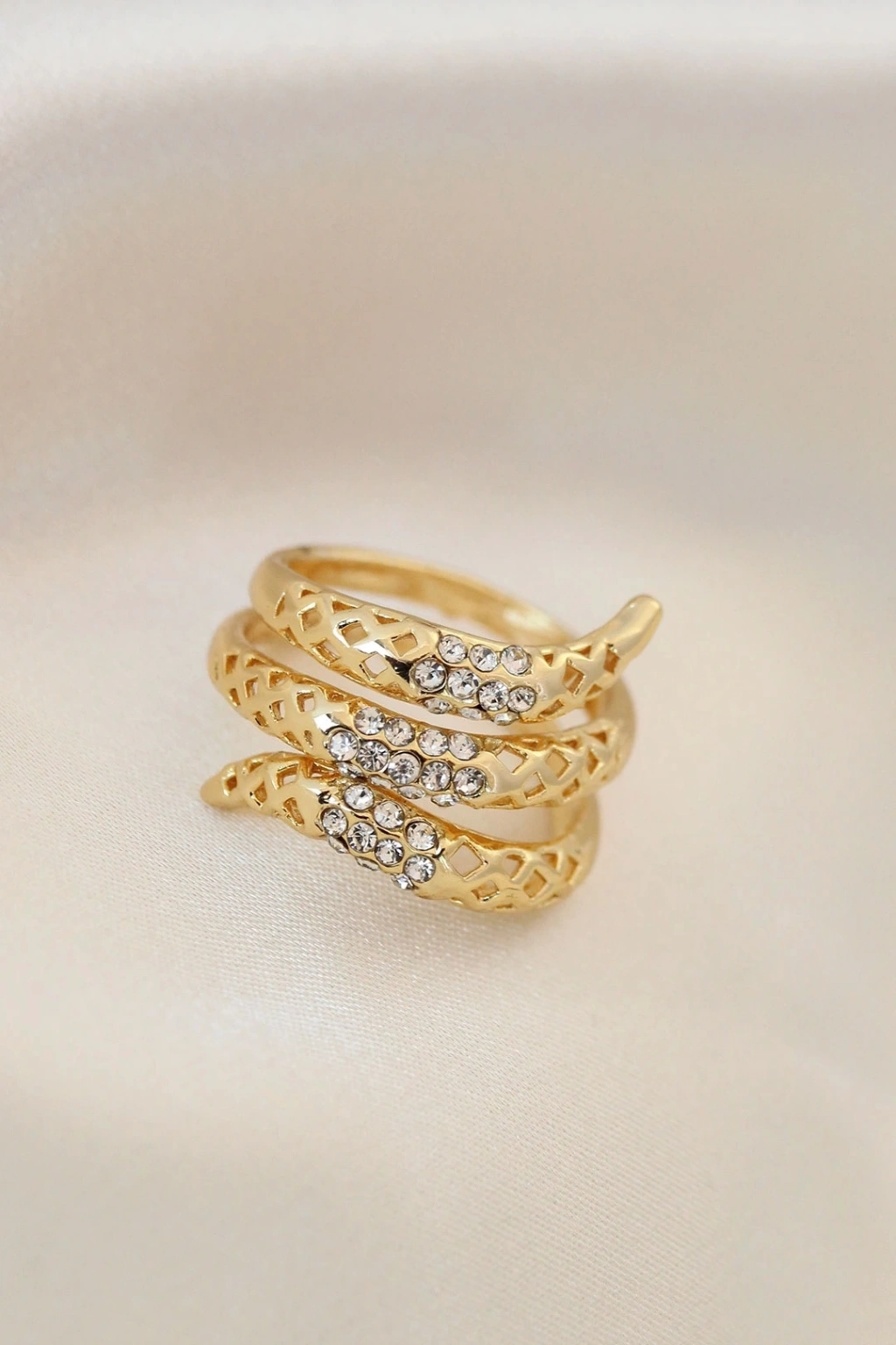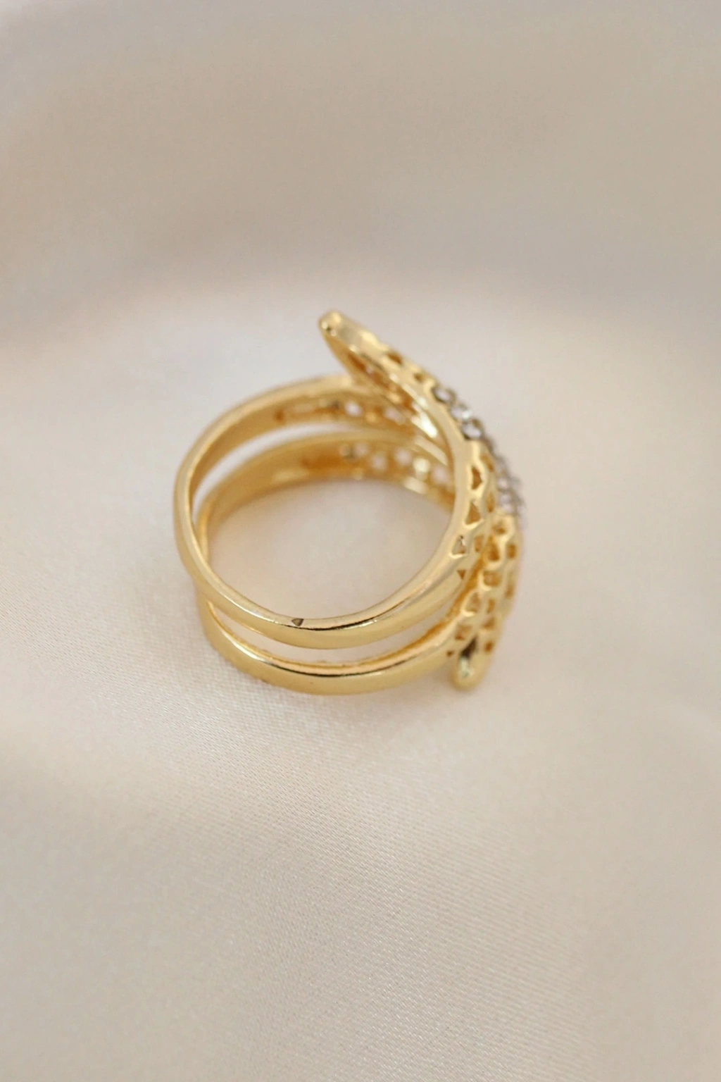 Ayarlamalı Altın Renk Metal Zirkon Taşlı Yüzük