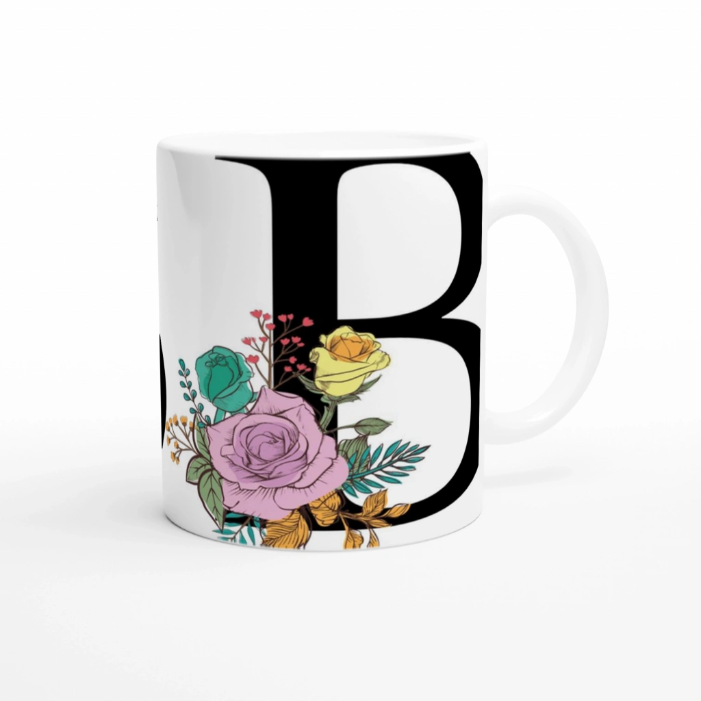Yumuşak renk paletiyle hazırlanan bu B harfi baskılı kupa bardak, her yudumda sanatsal bir dokunuş sunar.
