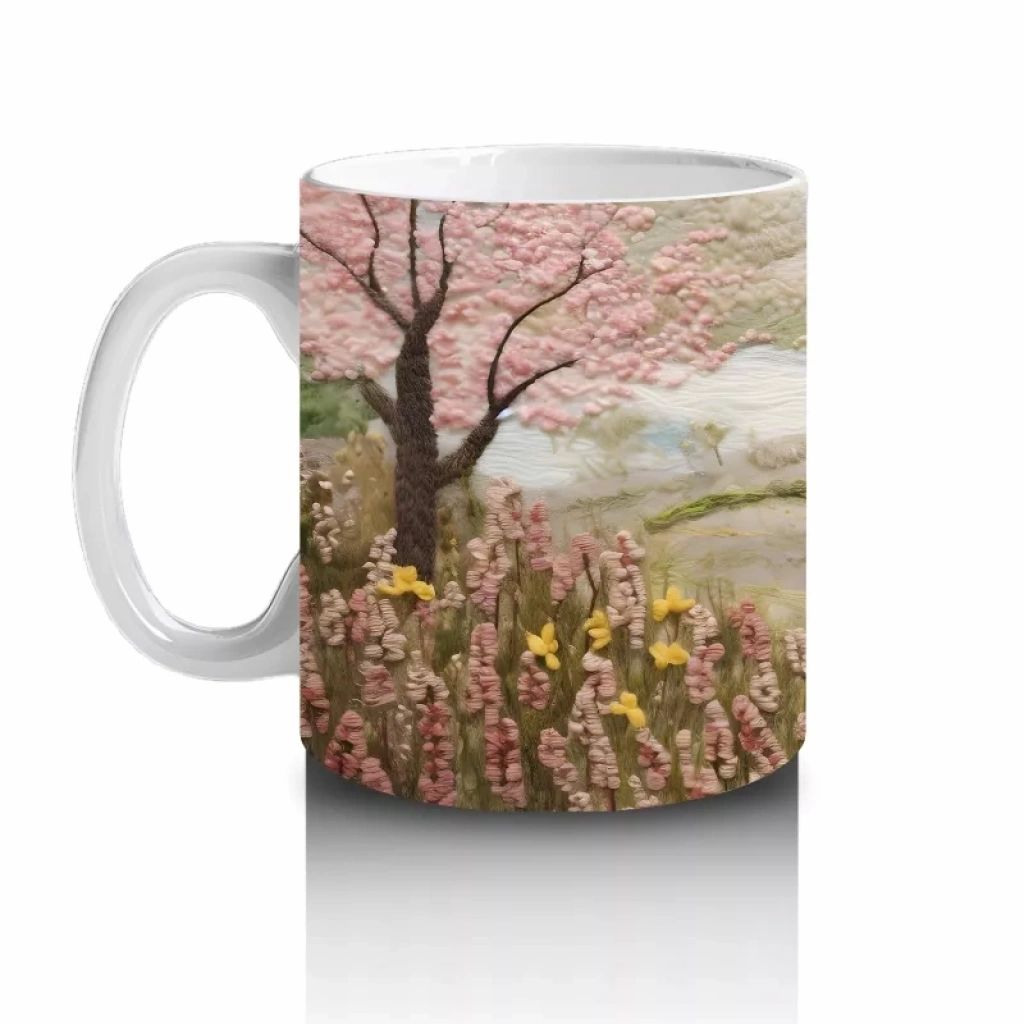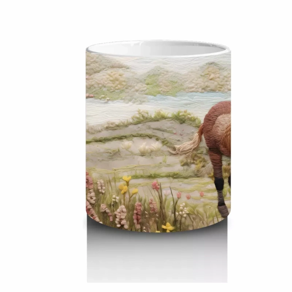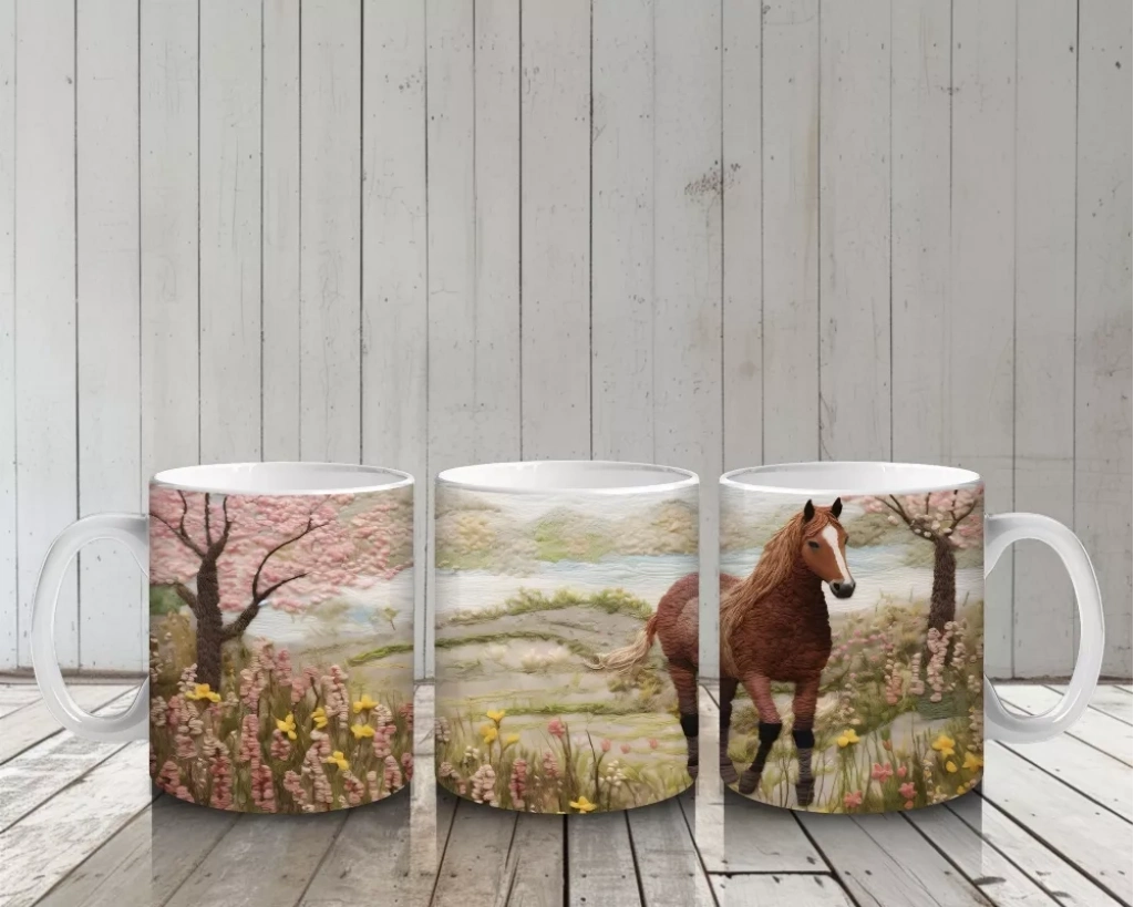 Bahar Manzarasında Zarif At Figürü - Baskılı Kahve Kupası