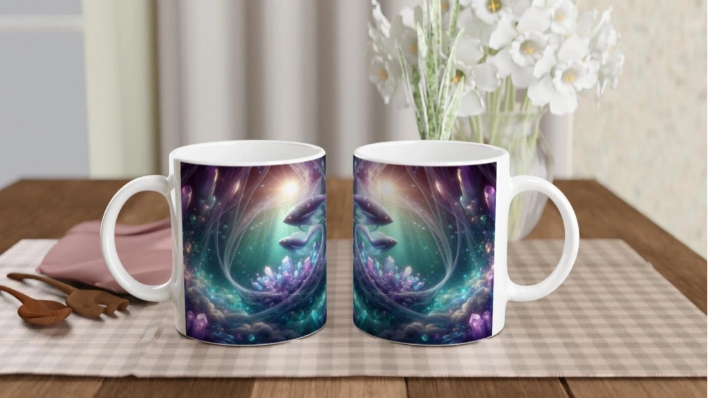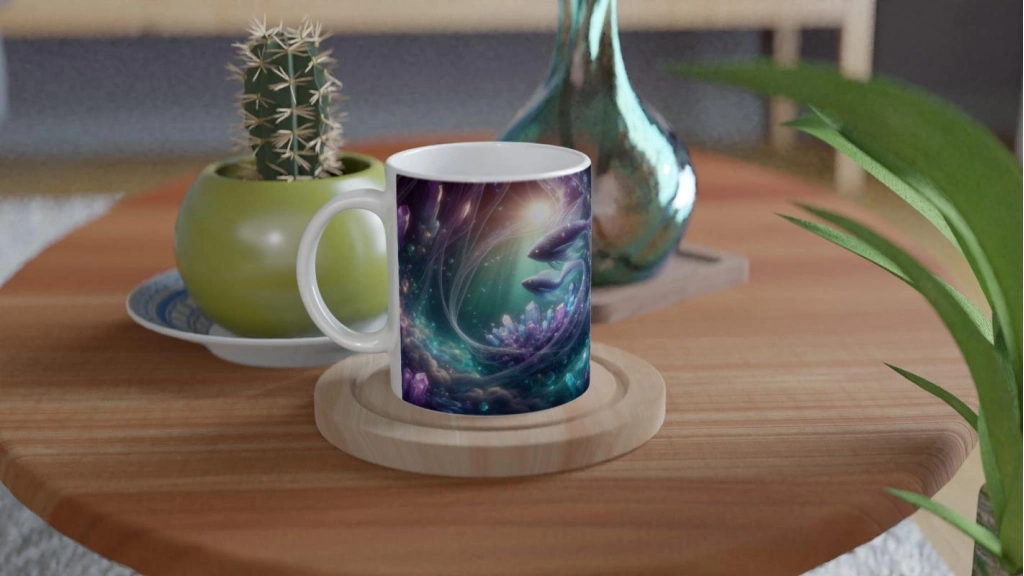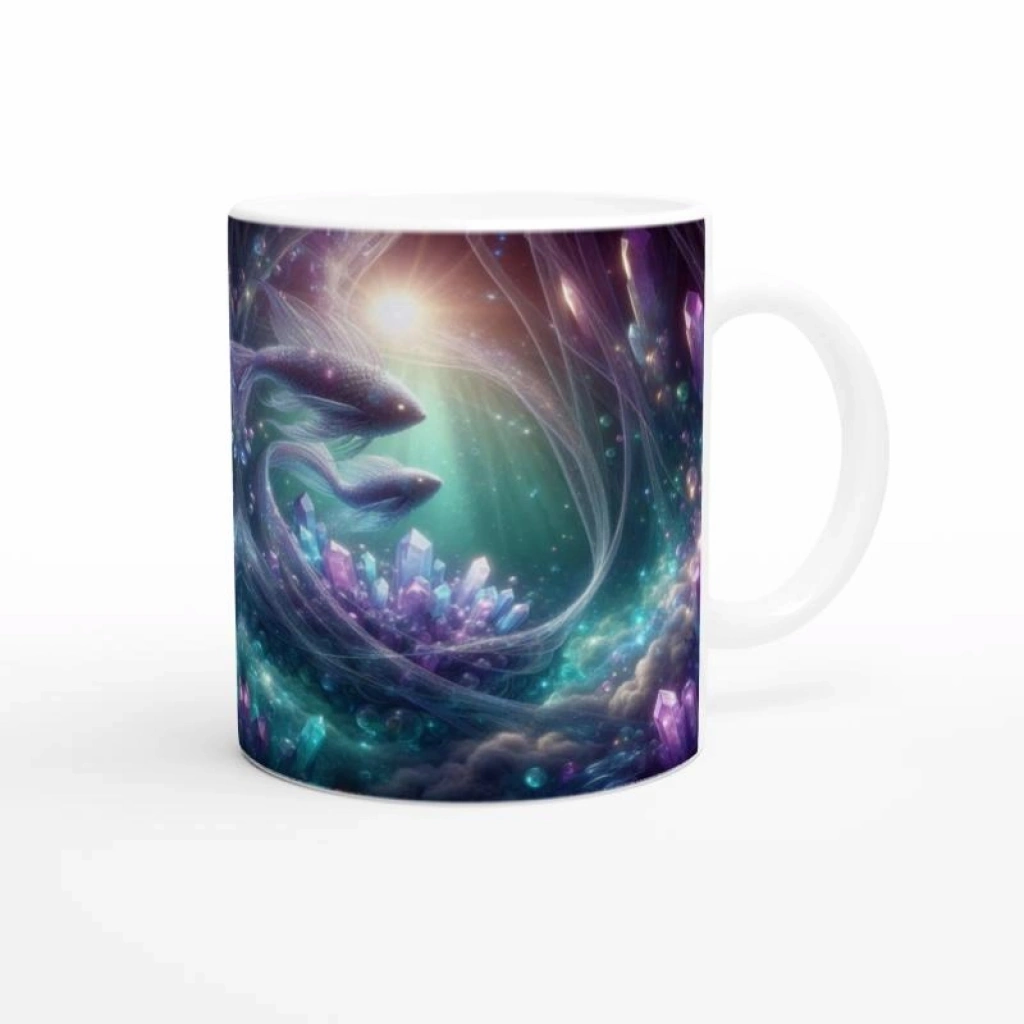 Balık Burcu Baskılı Kahve Kupası - Büyülü Kristal Mağarası Temalı Vs4