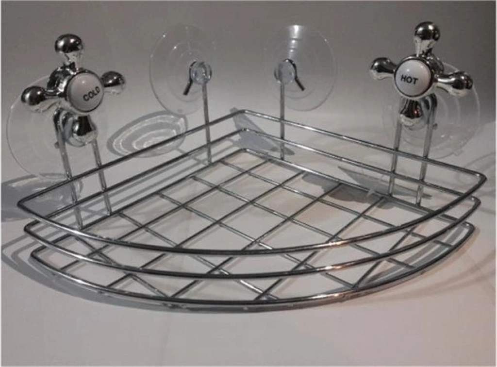 Banyonuzda en çok ihtiyaç duyduğunuz şampuan, krem, kese... v.b. gibi malzemeleri bir arada tutacak Vantuzlu Metal Köşe Banyo Duş Rafı.